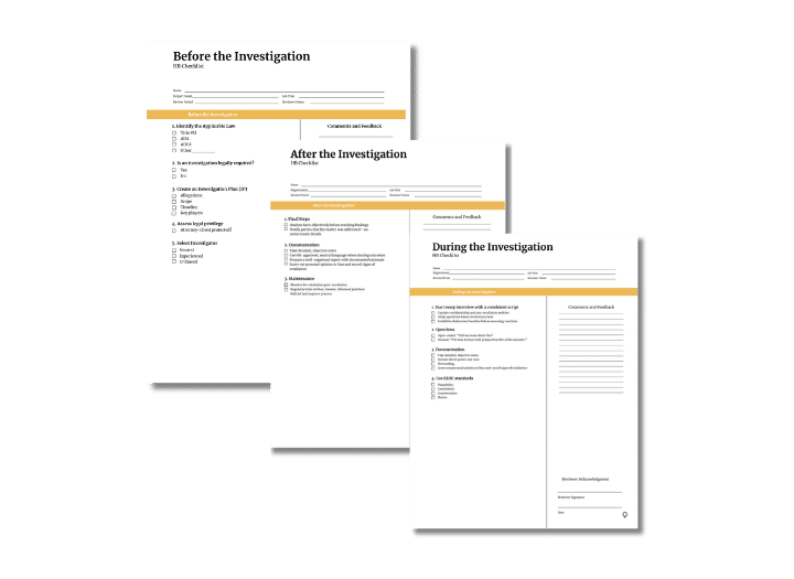 These checklists give HR a repeatable process that supports fairness, transparency, and defensibility across all types of investigations.