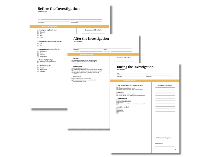These checklists give HR a repeatable process that supports fairness, transparency, and defensibility across all types of investigations.